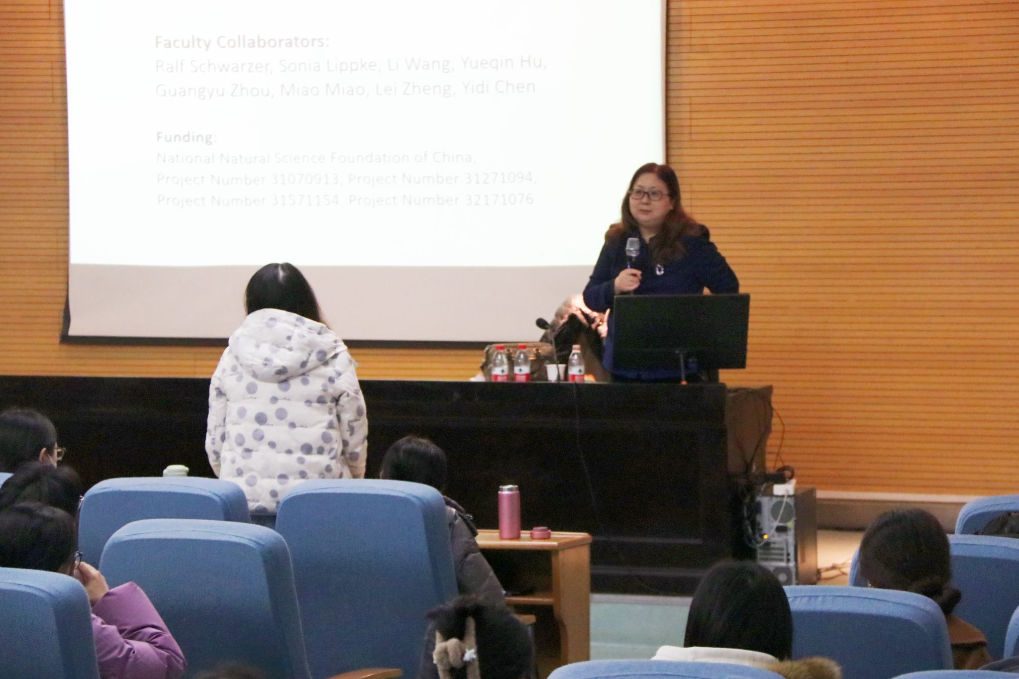 在本次讲座中,甘怡群教授结合自身团队的研究探讨了与压力相关的成长及其对心理健康的潜在益处。压力接种理论(Stress Inoculation Theory)表明,适度的压力暴露可以促进成长和积极的健康结果。他们参考Tabibnia的三方情感神经科学模型,探讨自我肯定,认知重评和意义建构在SRG中的中介机制。并使用功能磁共振成像(fMRI)研究了将意义建构与默认模式网络联系起来的认知神经机制,揭示了应对灵活性的显著中介效应。然而,最佳压力水平可能因遗传差异而异。通过对不同样本的研究,他们确定了调节压力-应对关系的遗传因素,并提出了差异应激后成长假设。最后,甘怡群教授讨论了通过意义建构,自我肯定,积极的认知重评增强压力后的心理健康的干预计划,并展示了针对心理健康的可扩展的移动干预的潜力。讲座结束之后,甘怡群教授与350vip8888新葡的京集团师生进行了答疑与深入的互动交流。