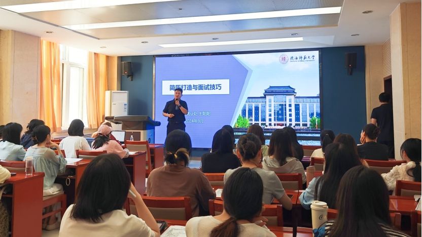 为帮助毕业生提升求职竞争力,9月28日下午,学院邀请我校学生就业指导服务中心王阳阳副主任,为学院毕业生带来“简历打造与面试技巧”的专题讲座,学院2024届毕业生参加了讲座。会议由研究生辅导员段晓辉主持。